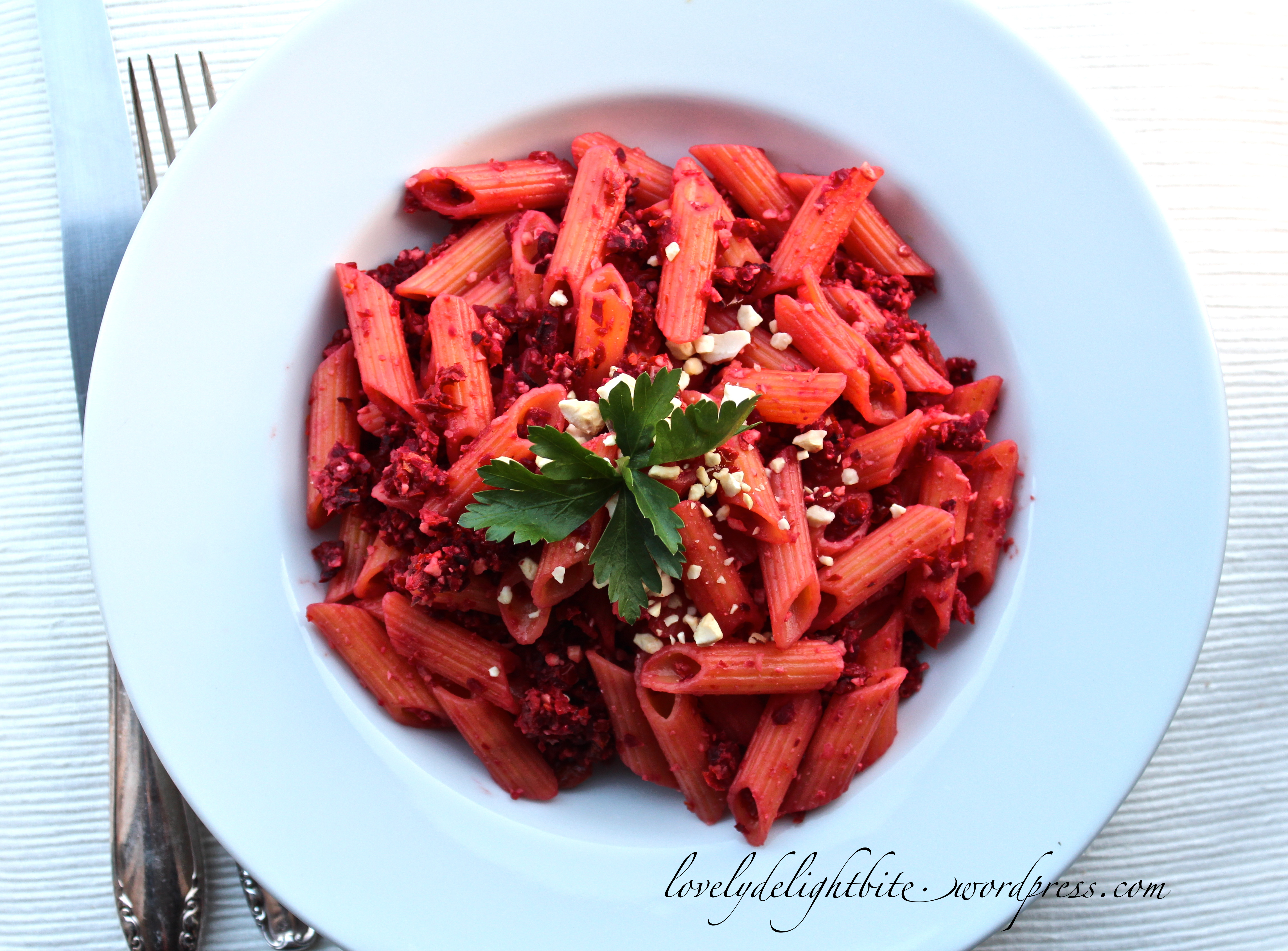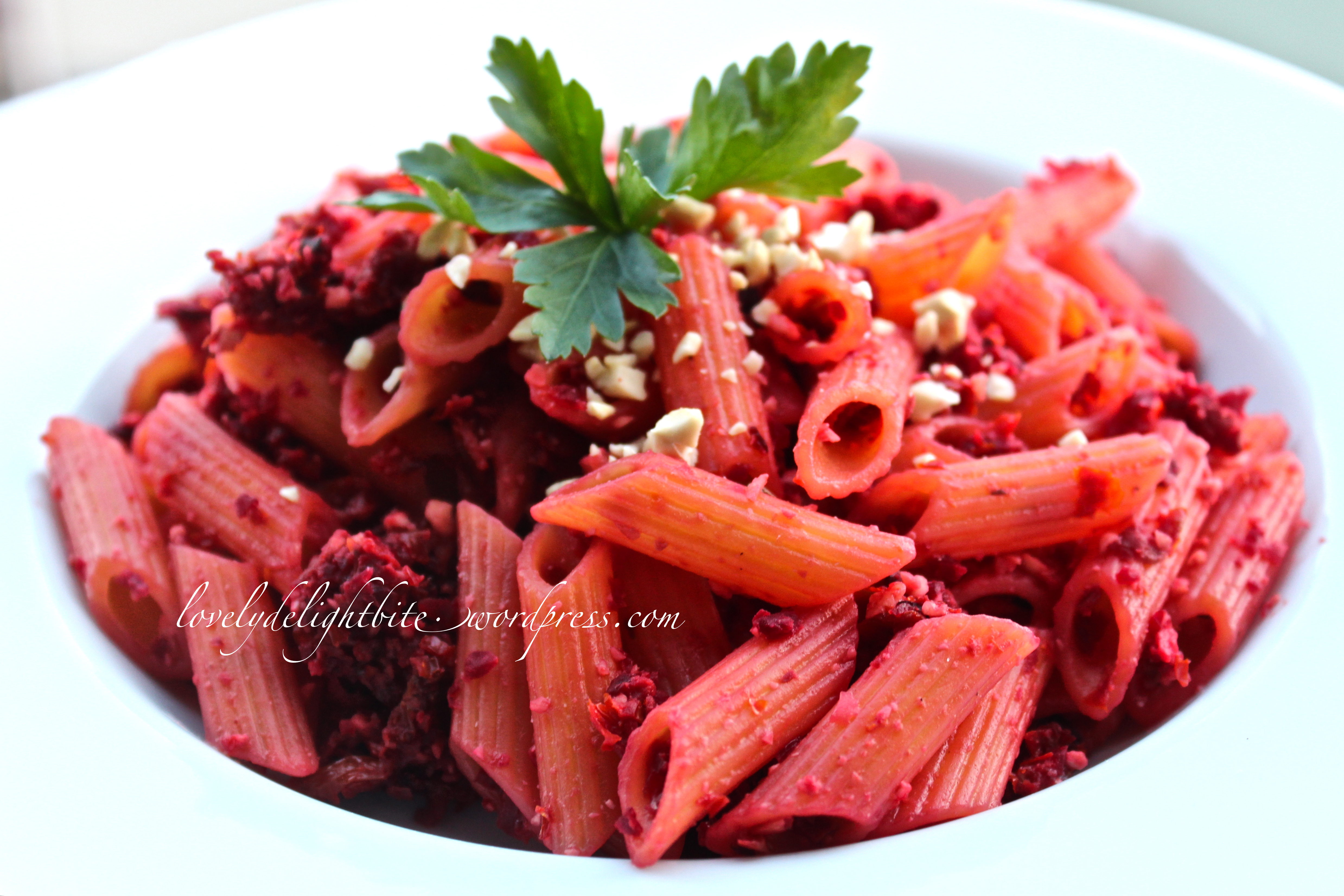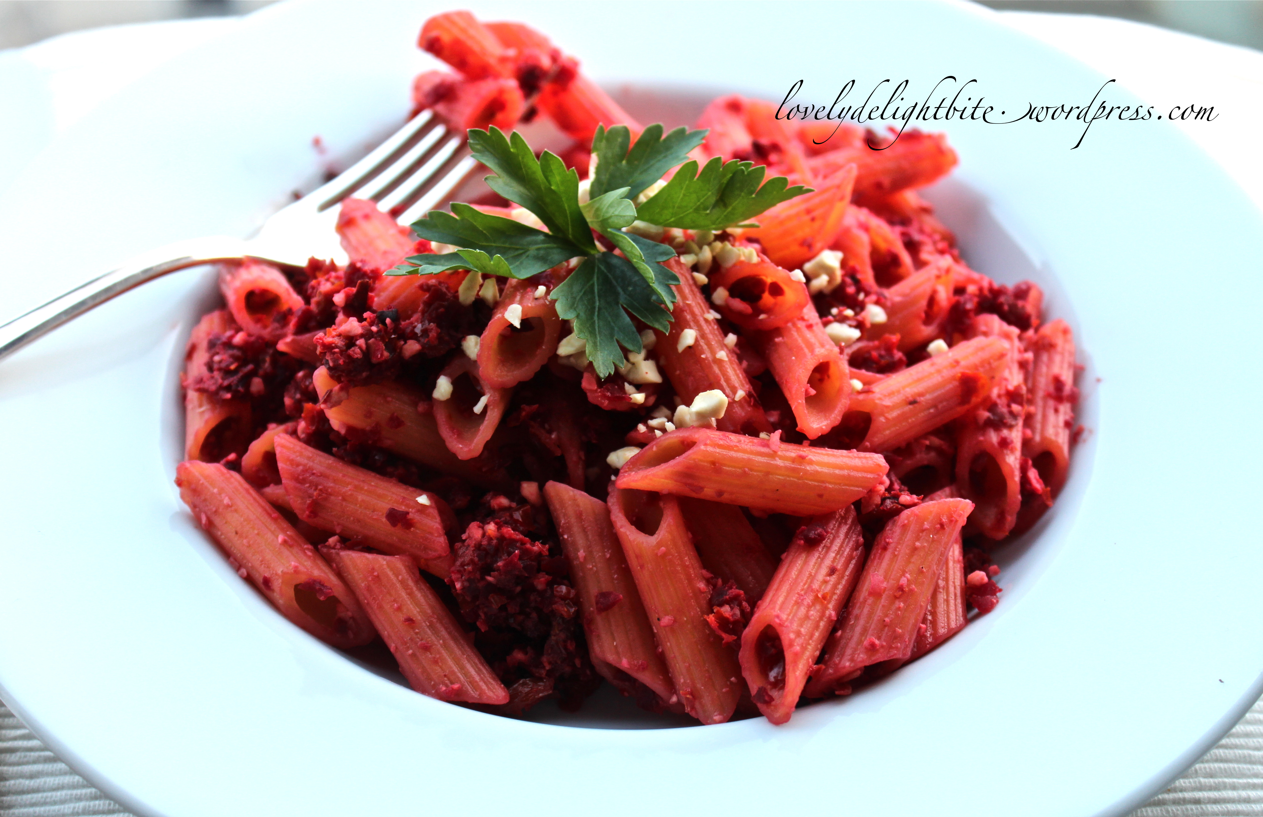 Remembering this, I created a Beet Pesto, with 5 simple ingredients: Beet, Garlic, Sun dried Tomatoes, Cashews and Pepper.