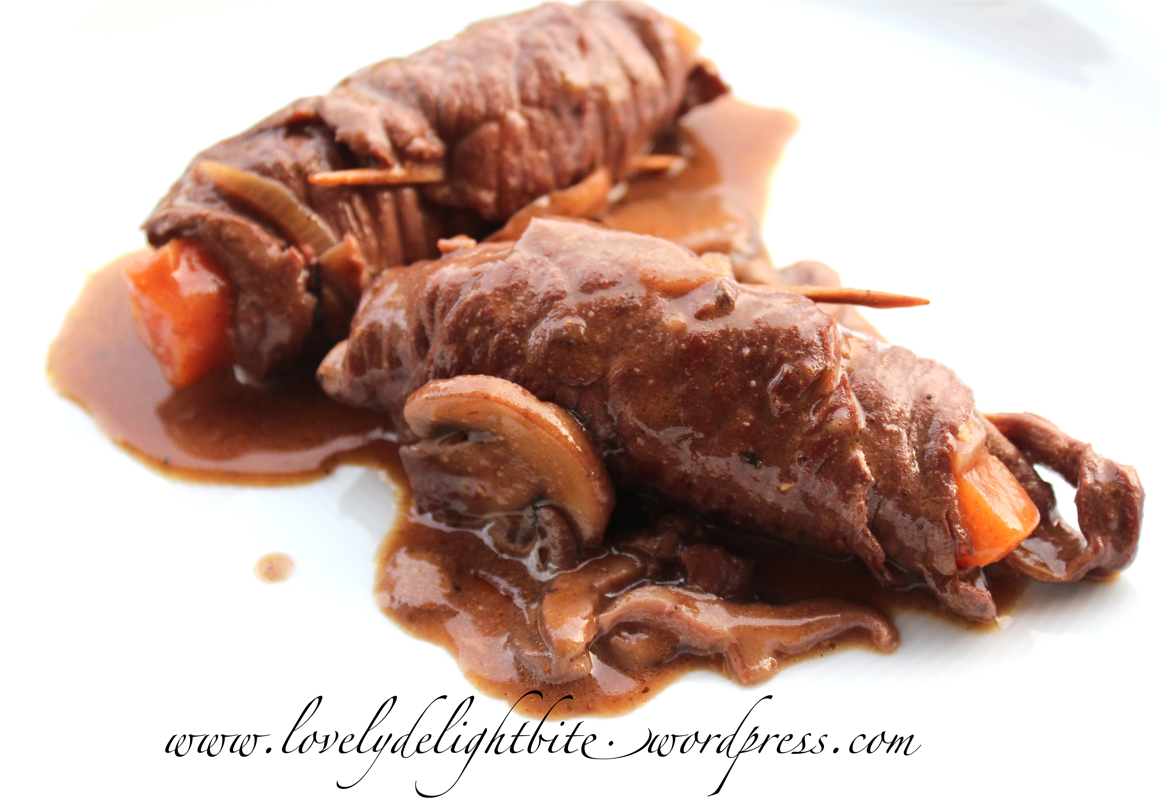 There are a few varieties of this dish, called Fleischvögel (Beef Rolls). The way the woman in my family prepared it and still do is this classic way.