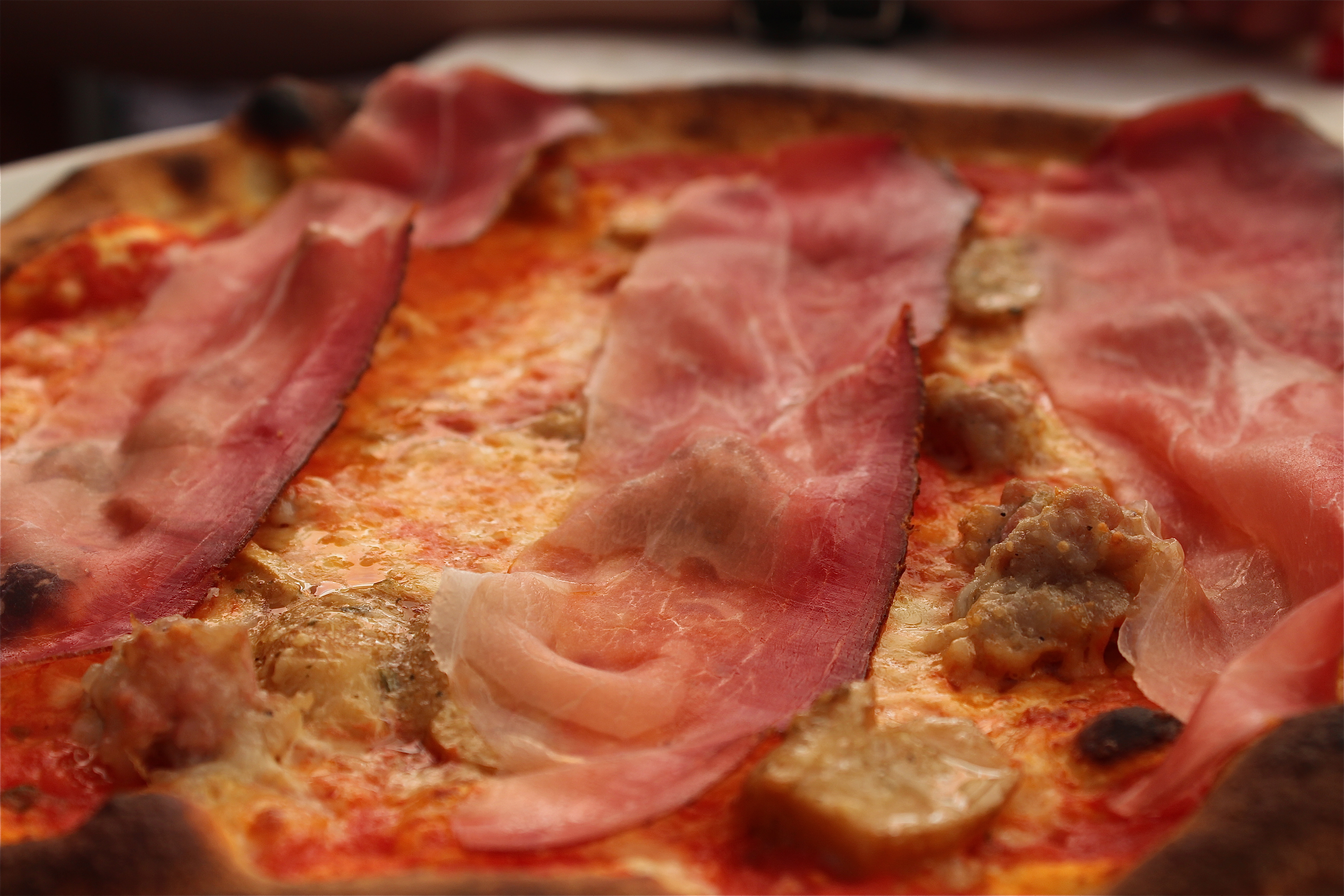 The pizza is baked just for a few minutes at the highest possible temperature of 400 to 500 degree celcius. This is done in the lowest possible chamber. Most Pizzas are preferentially thin. If you eat it by hand, they call it “a libro” what means “folded into a book”