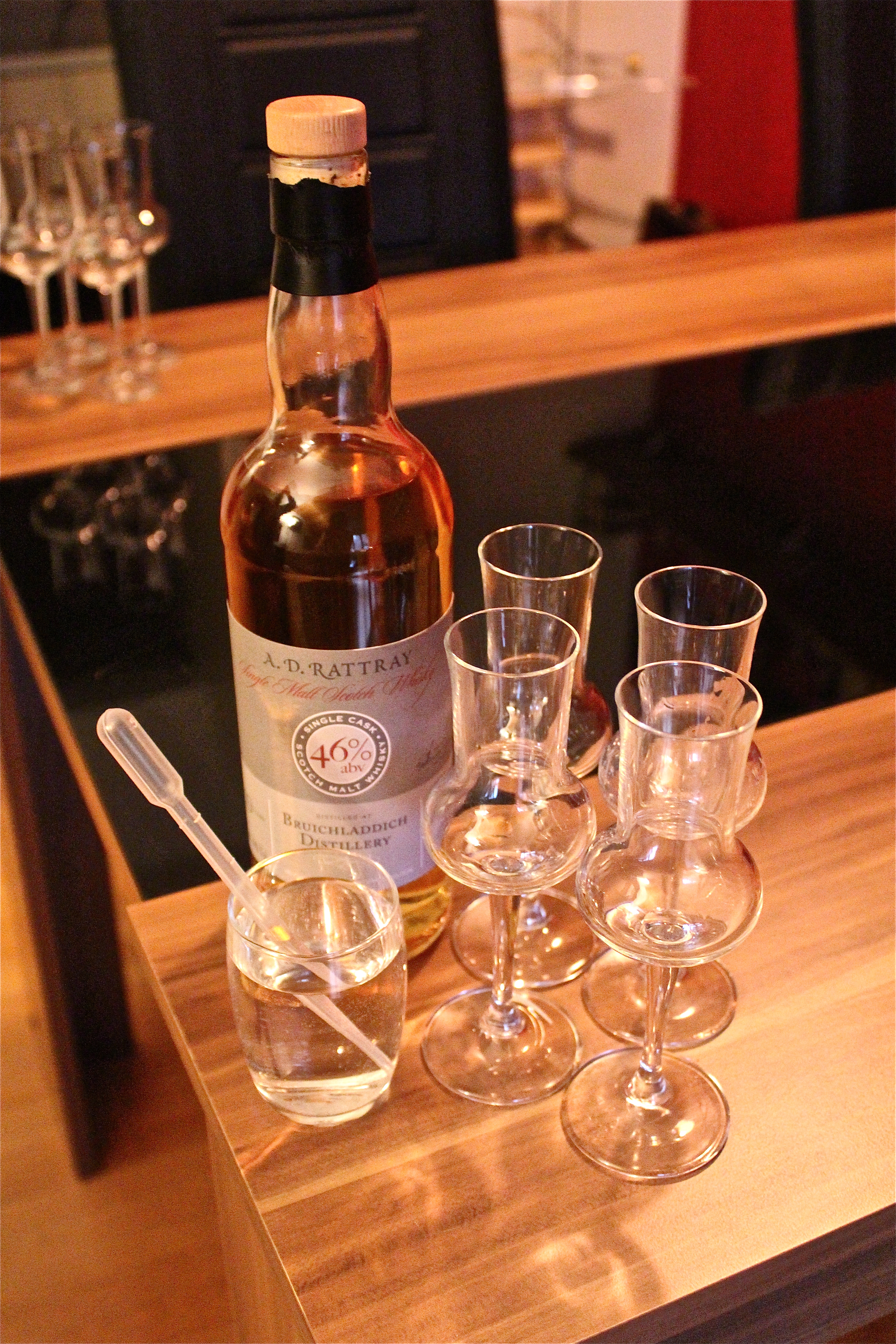 I didn’t know too much about Whisky, so this was lots of fun and very interesting. I learned that the spirit is sniffed first, so that the aroma can be examined. Sniff it 3 times. Be careful the first time. The strength of the spirit can burn if you inhale too much. Then take a little sip and let the Whisky move around in your mouth by chewing it lightly. The flavor will change over time in the mouth.