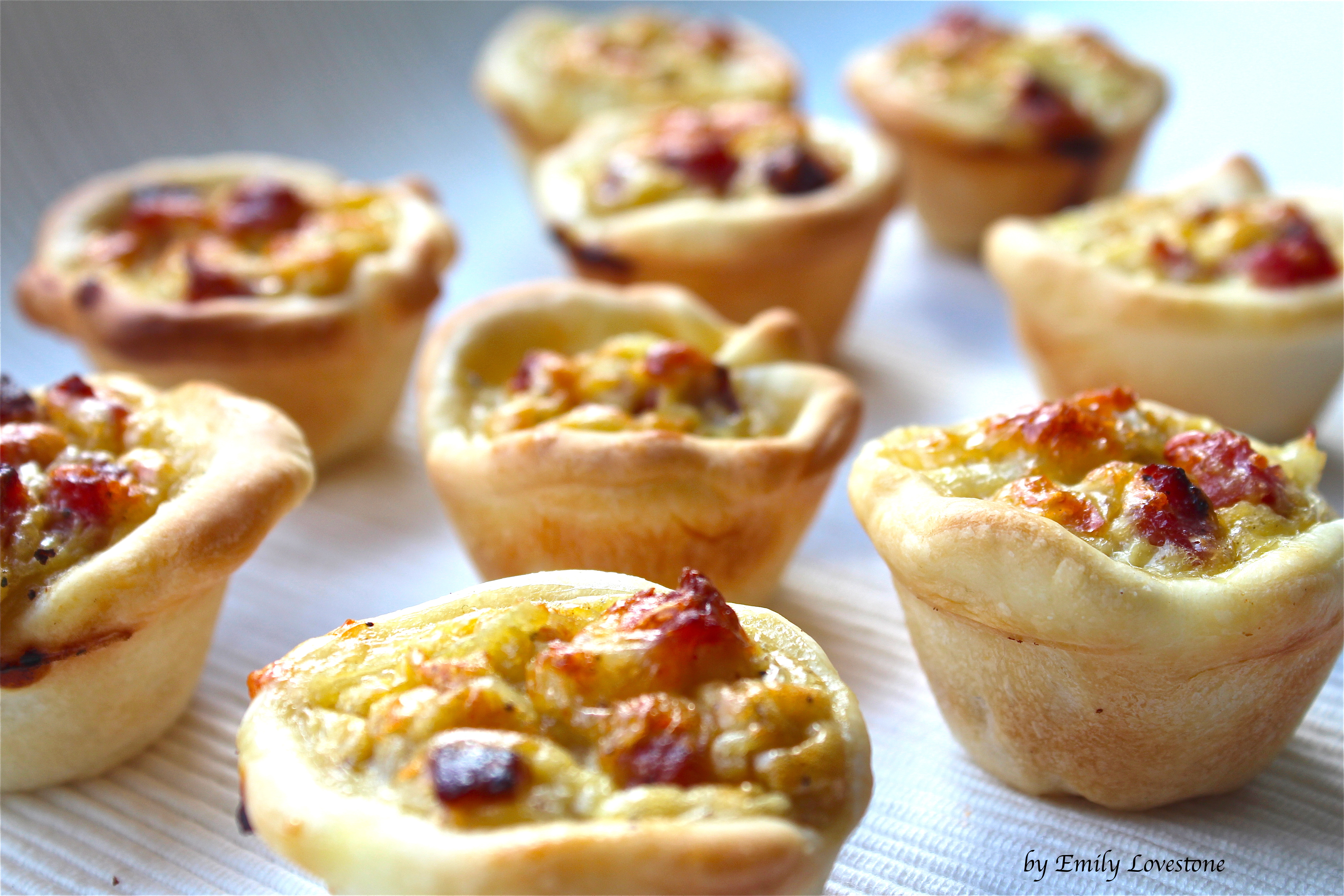 Fill the Mix into the dough shells and bake them for about 20 minutes.