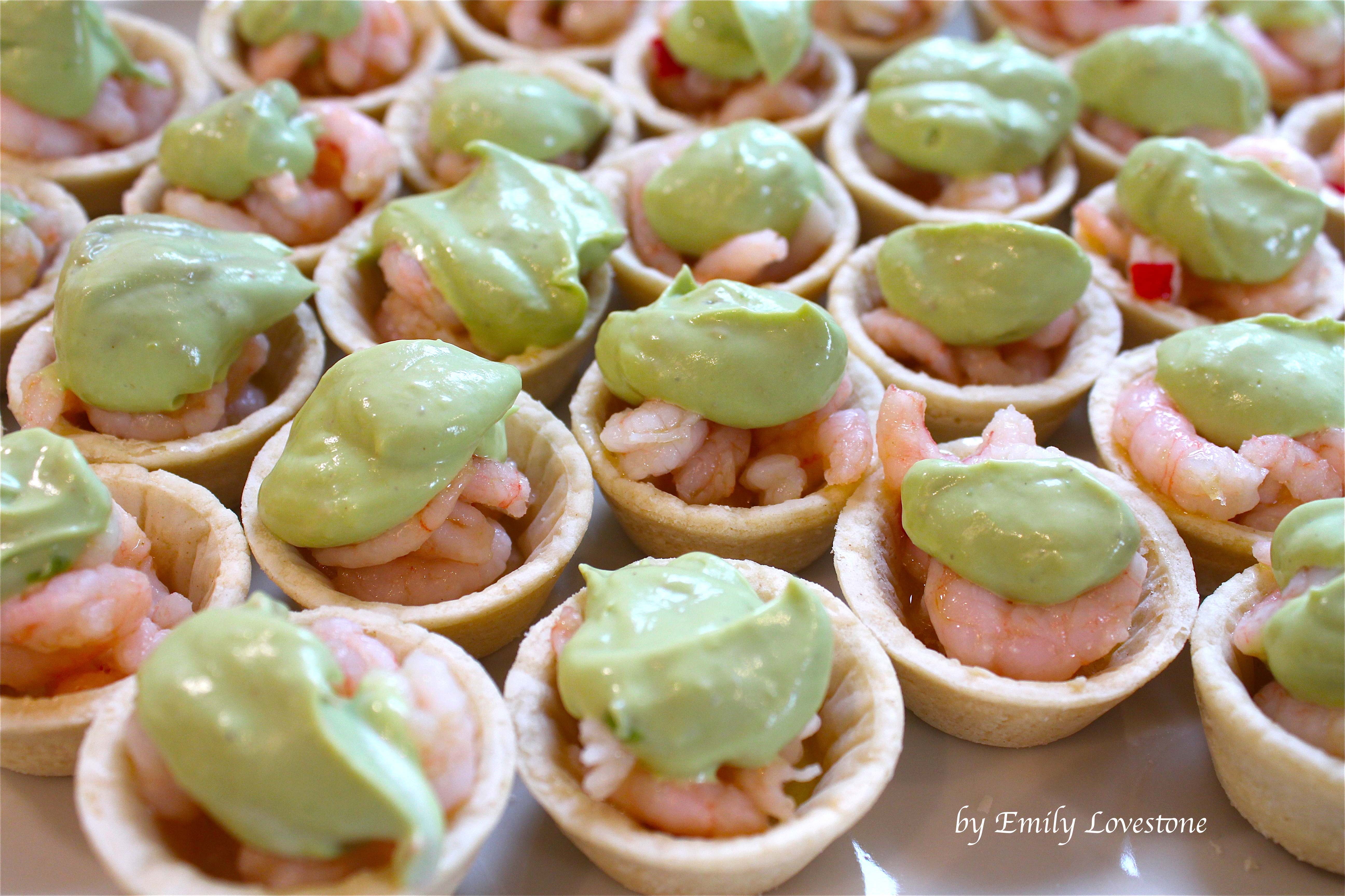 Fill the Crust Shells first with a spoon full of marinated Shrimps (without the juice, so the Crust Shell won’t soften to fast) and top them with the Avocado Cream.