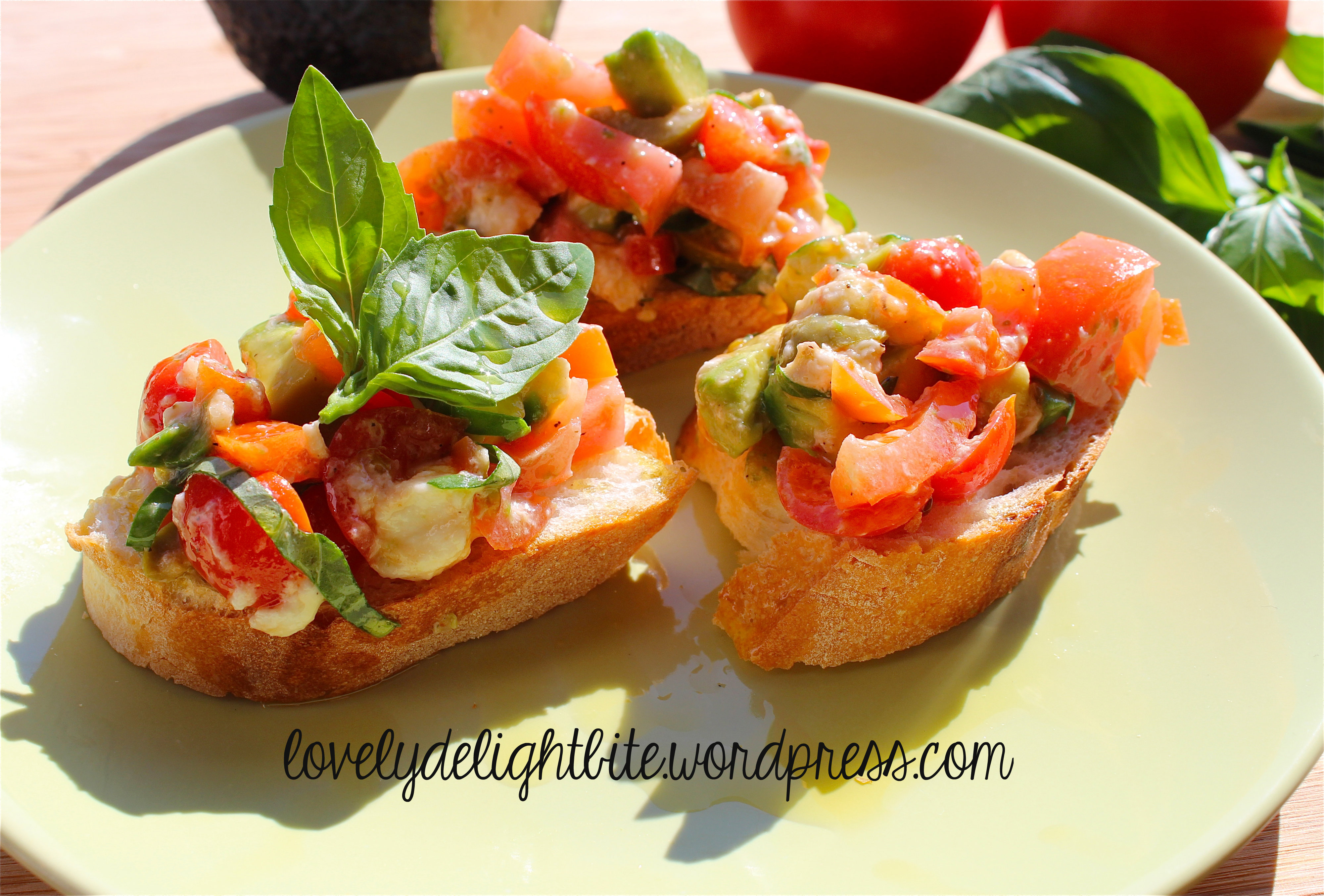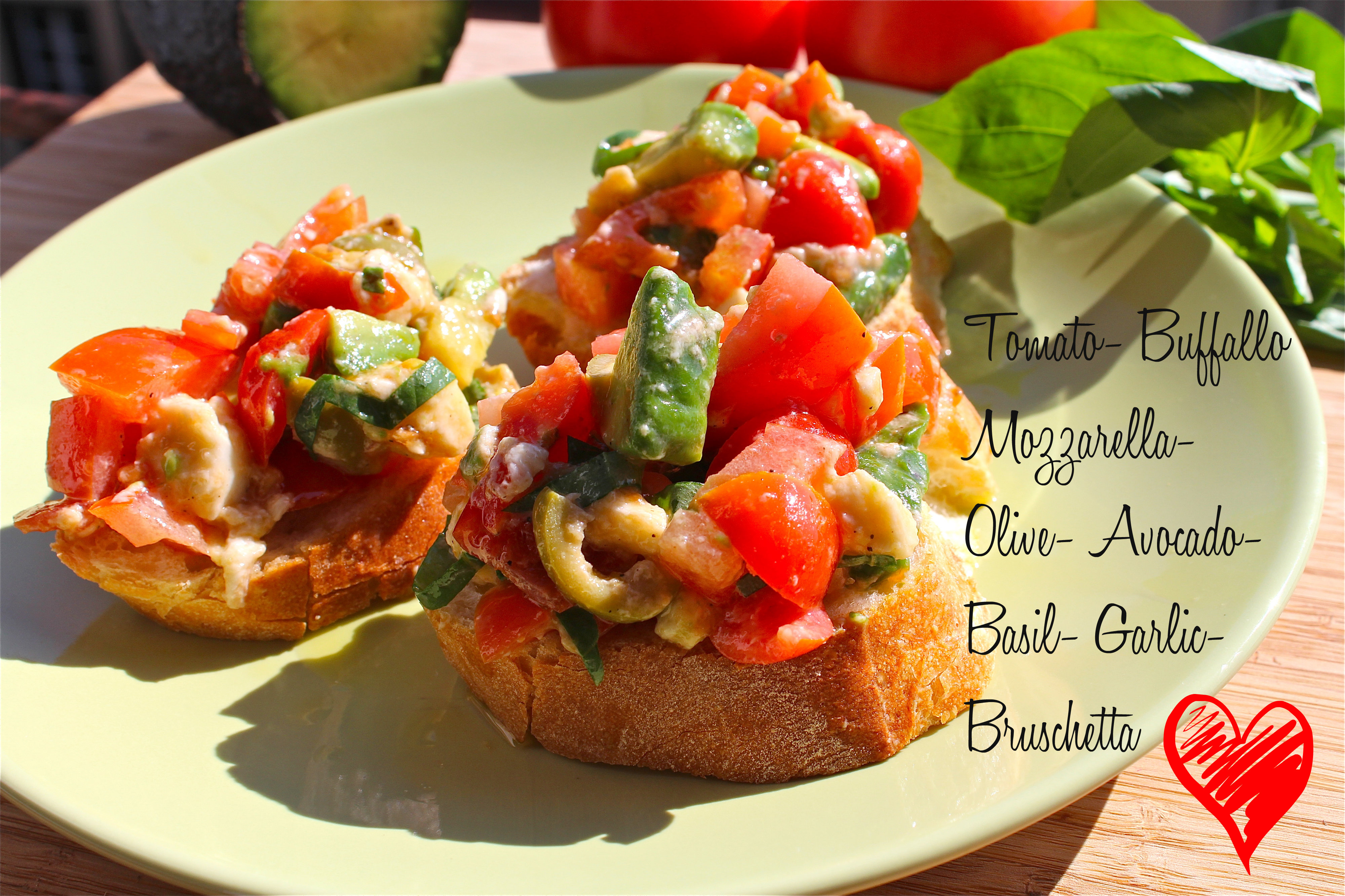 Cut small pieces of the Tomato, Avocado, Mozzarella, Olives and Garlic. Chopp the Basil. Mix everything in a bowl and marinate it with Olive Oil, Lime juice, Salt, Sugar and Pepper.