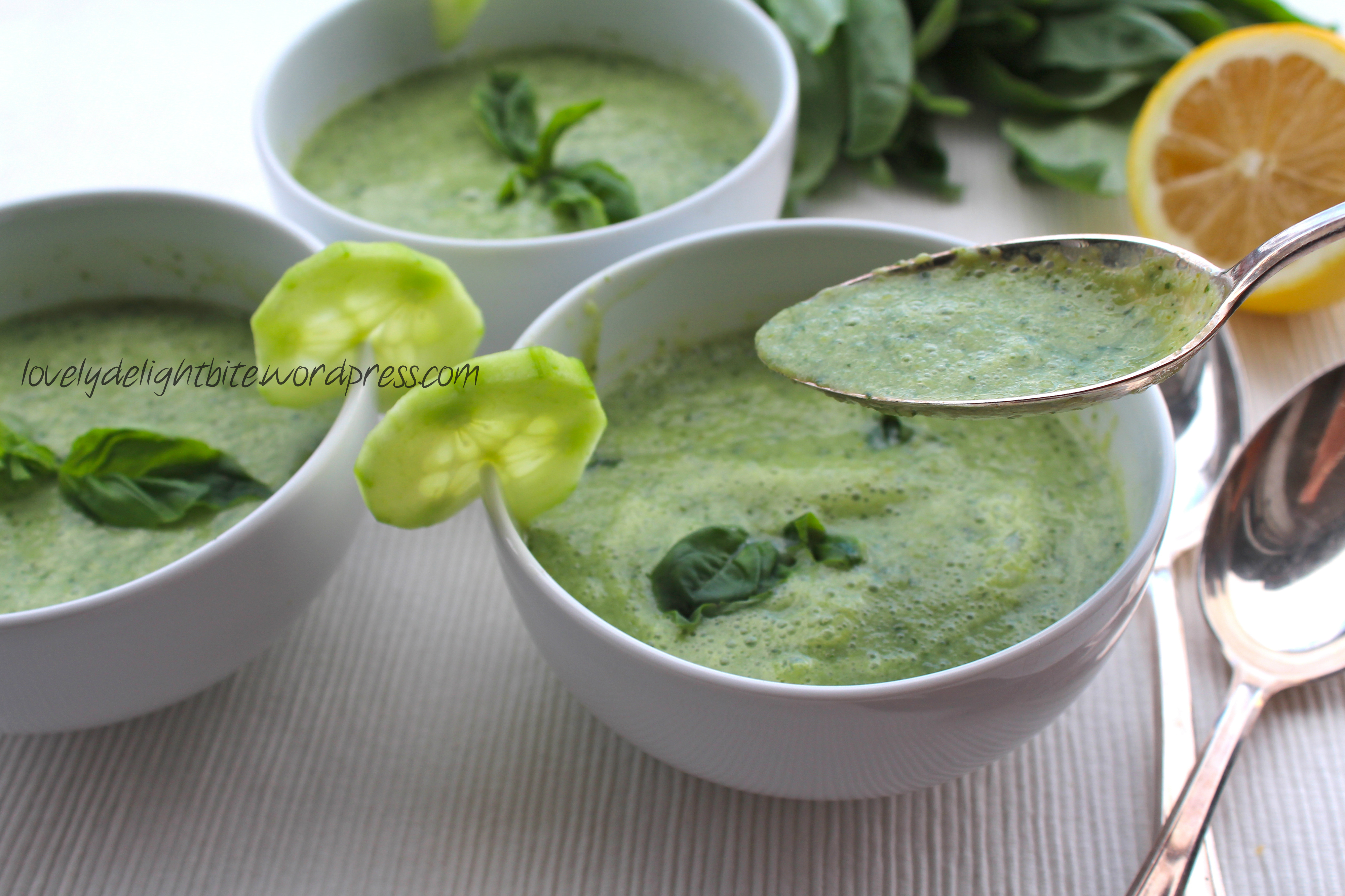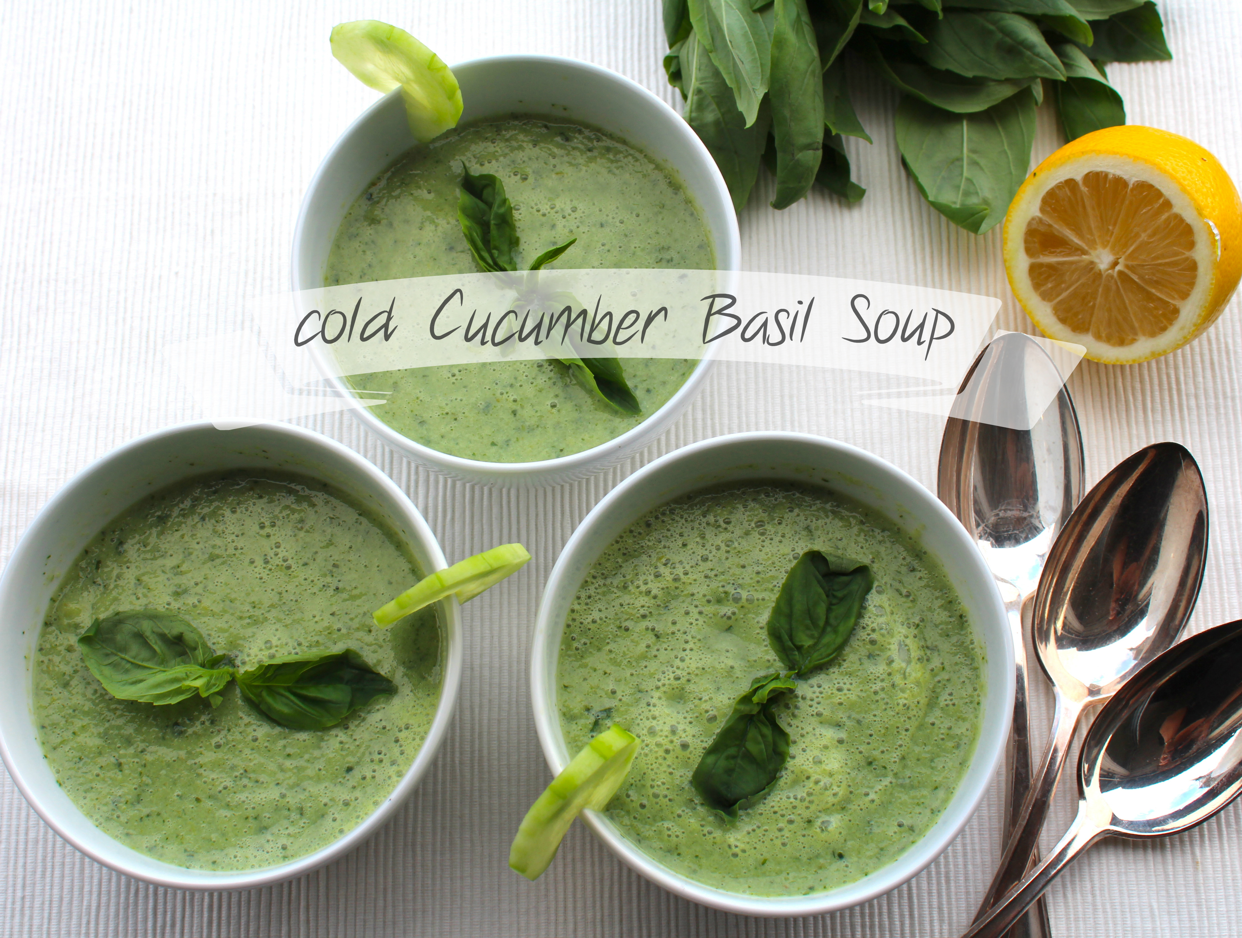 You might think “Isn’t this cold Cucumber and Basil Soup more of a summer dish”. Well, I won’t contradict. But hey, there is an other half of the world that has summer time right now. So this is for all you people that enjoy a warm climate right now or that simply don’t care and like to enjoy some cold creamy soup when it snows – just like me.