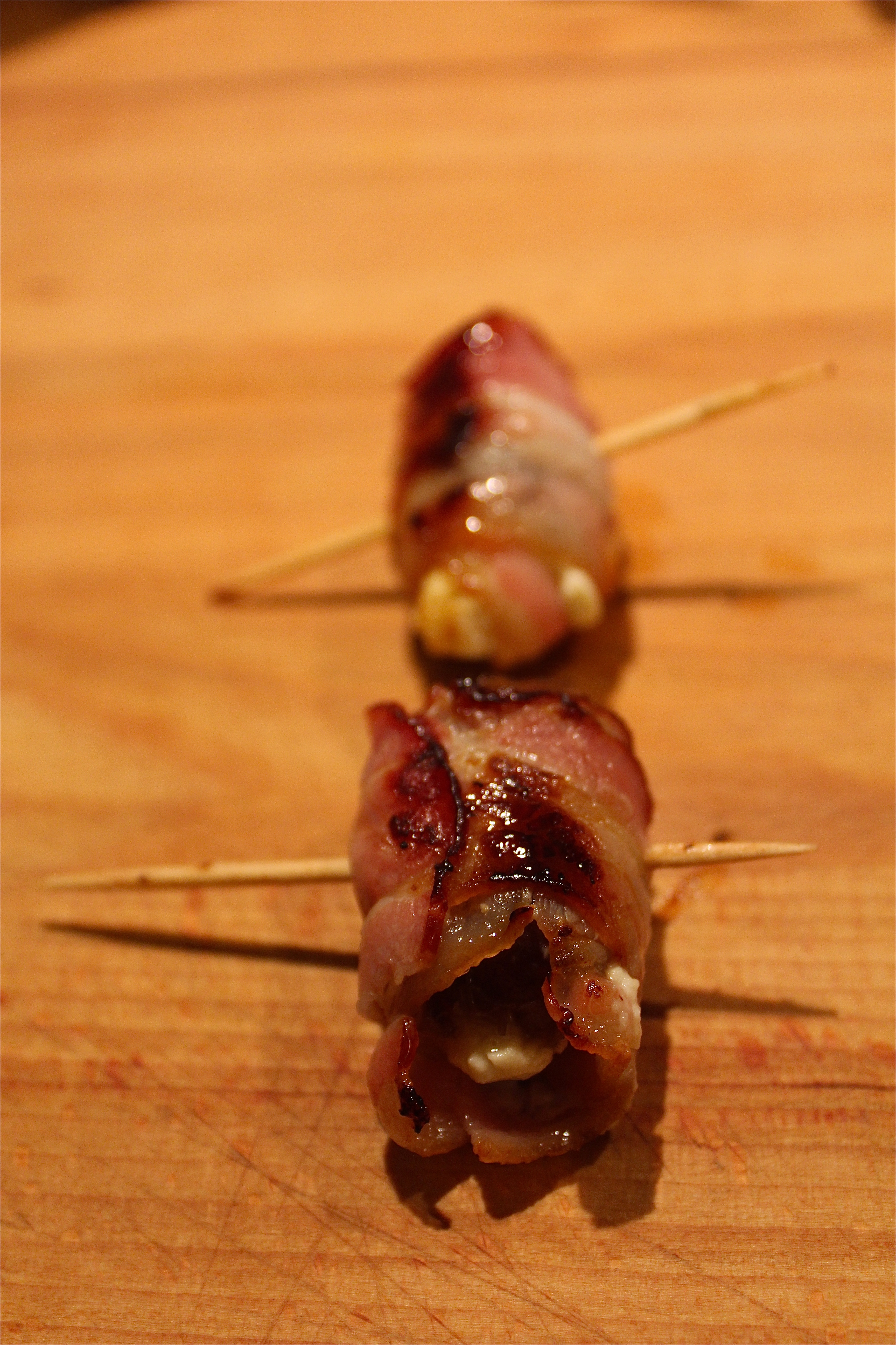 Then fry them on both sides in a pan until the bacon is brown and crunchy