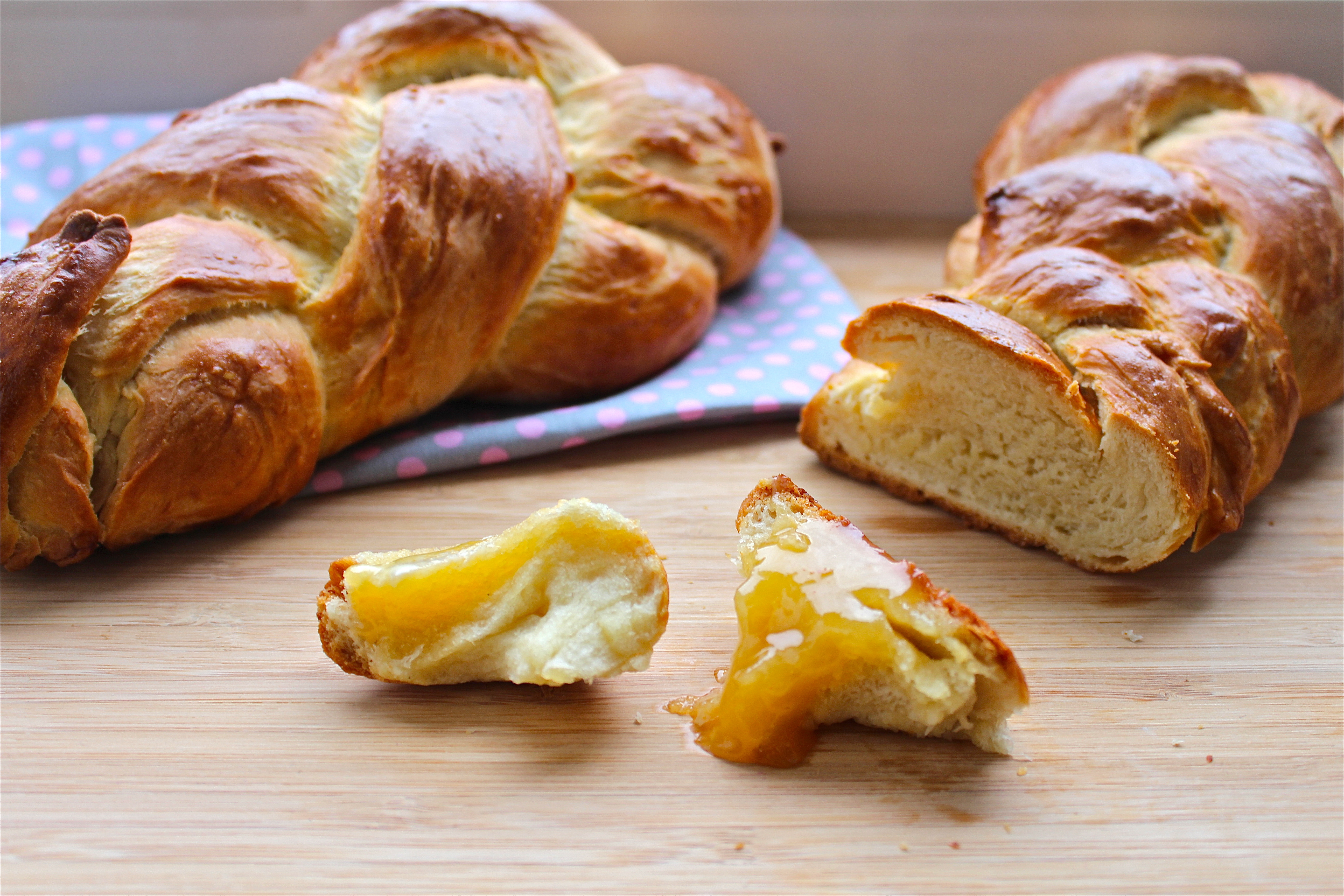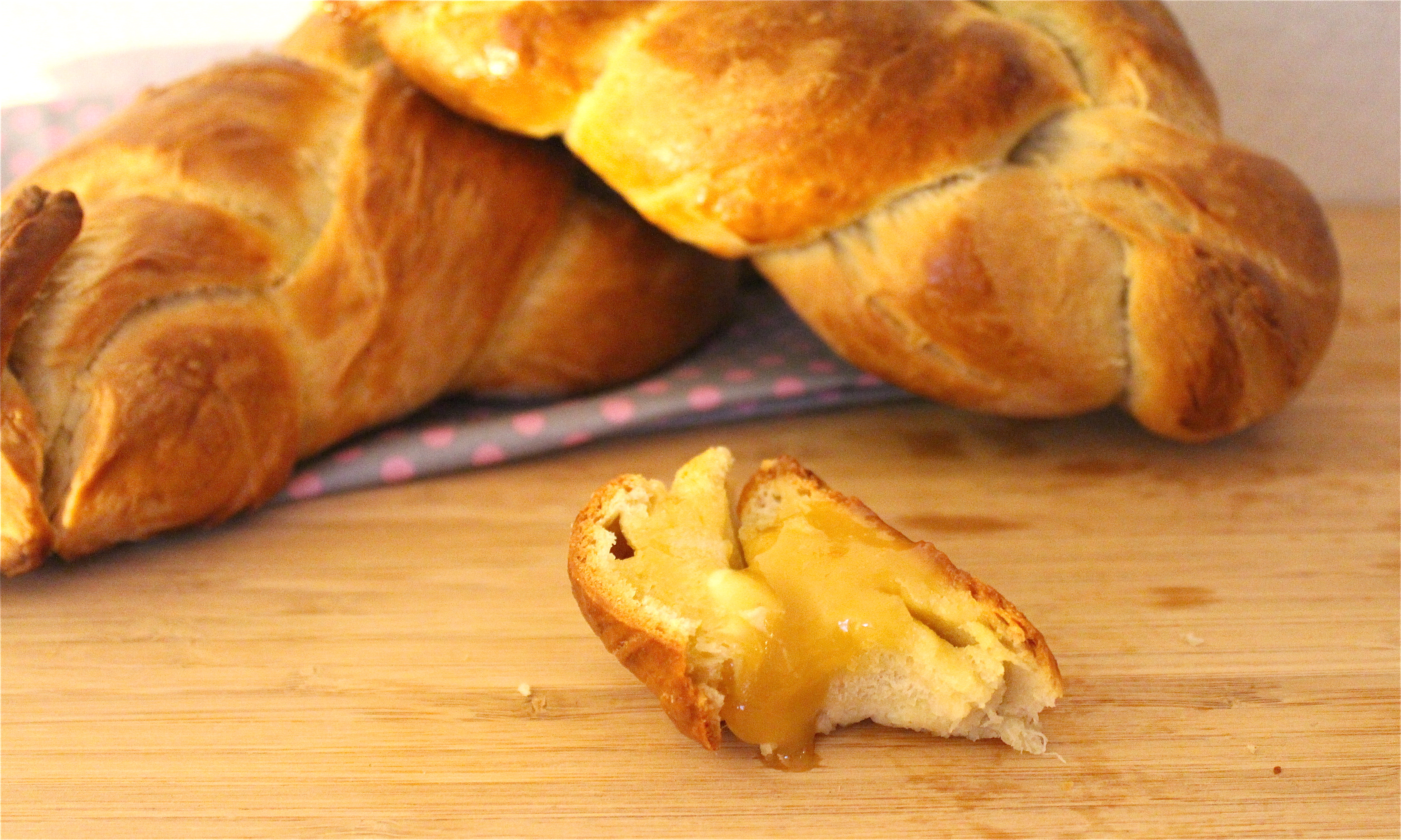 Take the dough out of the bowl, knead it one more time. Then split the dough and weave two braids.