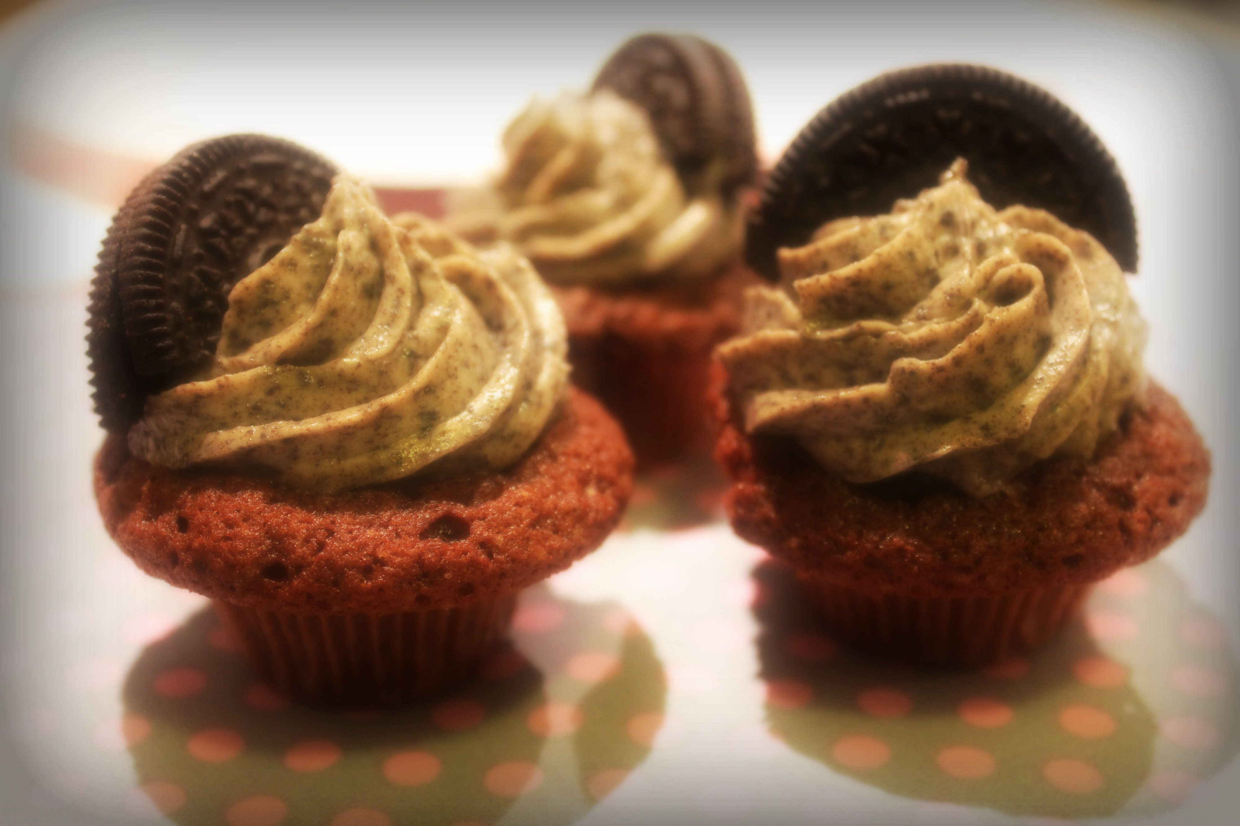 Mix the butter and caster sugar well. Crumble 6 Oreo cookies in a food processor and mix the crumbs to the butter. Frost the cupcakes, then decorate it with Oreo halves or Mini Oreo’s.