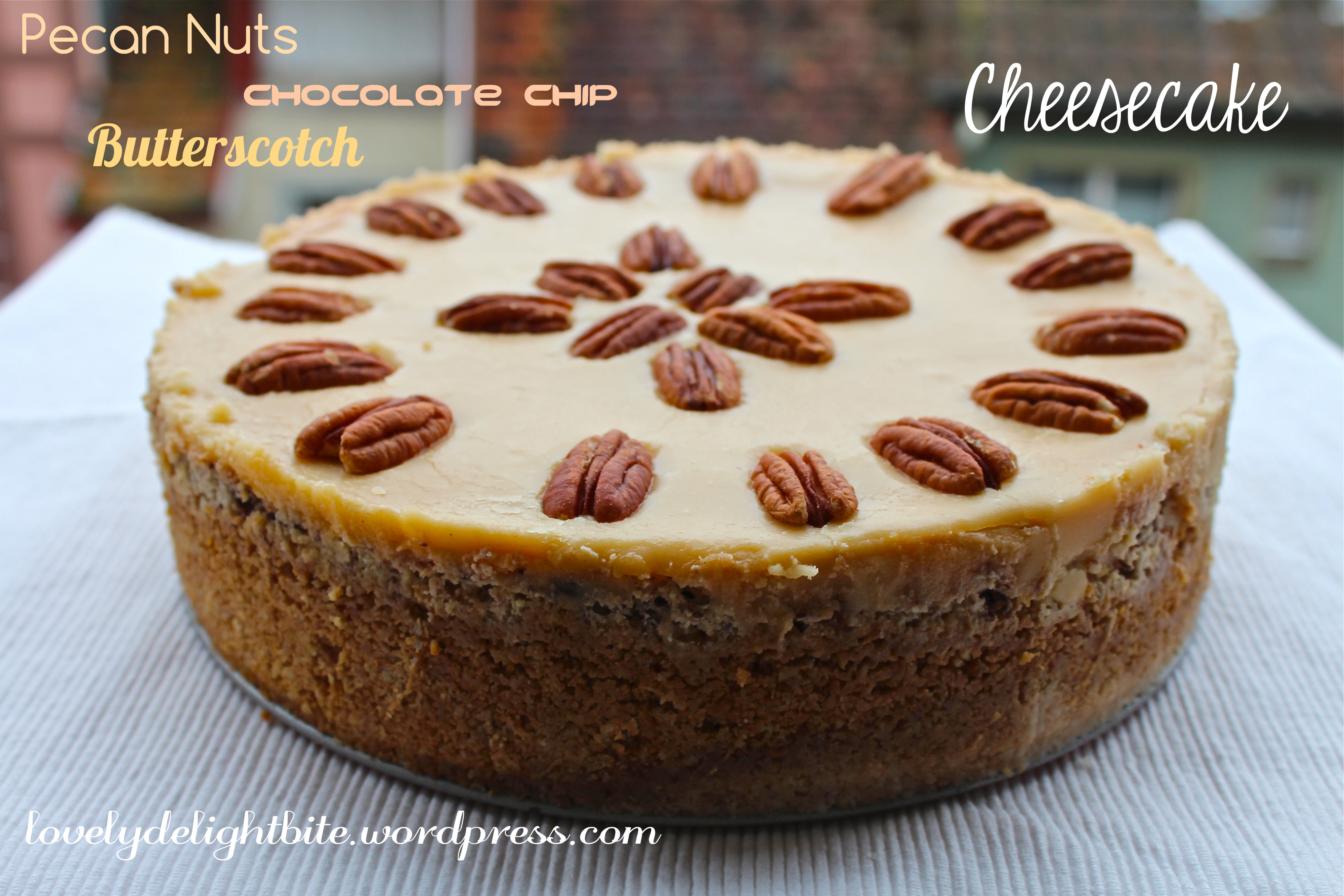Pecan – Chocolate Chip Cheesecake with a Butterscotch Topping