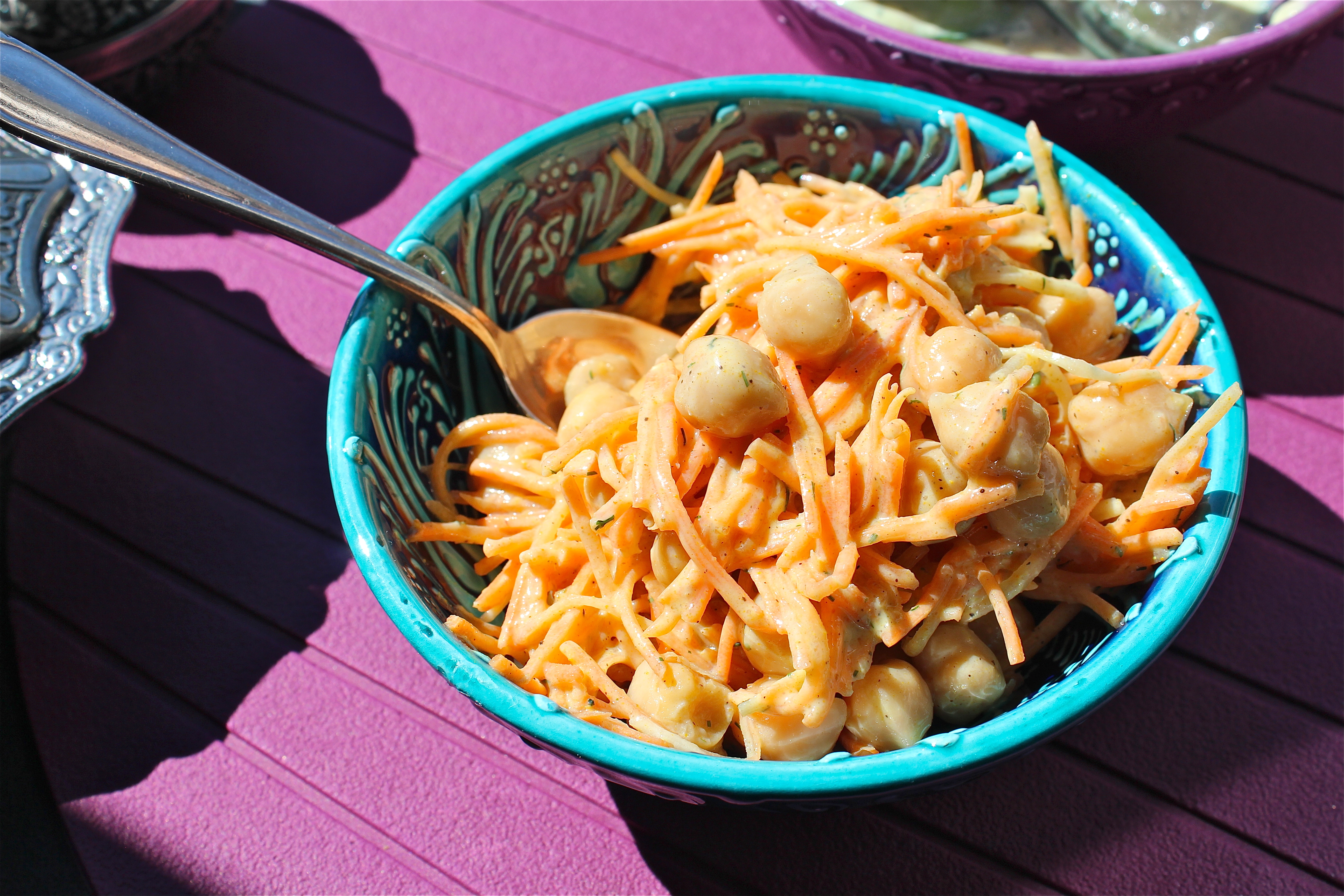 For the Carrot Chick Pea Salad: Shred the Carrots and mx them with the Chick Peas.